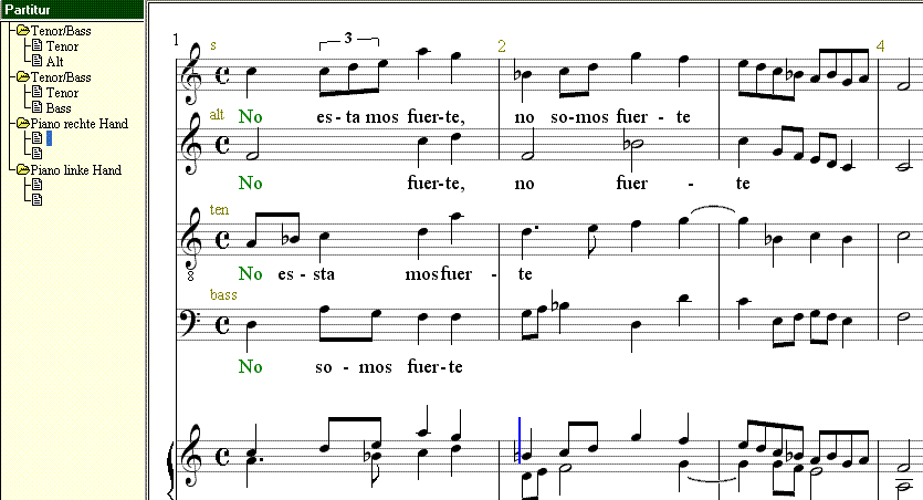 - ...oder alternativ die Chorstimmen zum Erfassen in vier Notenzeilen trennen (Strg + T).